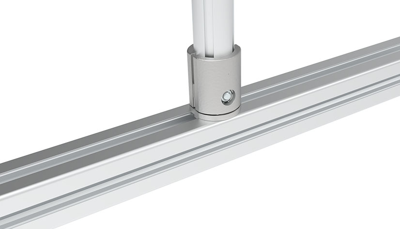 To connect a tubular frame profile with Ø 30 mm outer diameter with a slot 8 aluminum profile