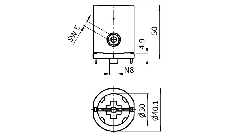 2 components for outer T-connector D30 - slot 8