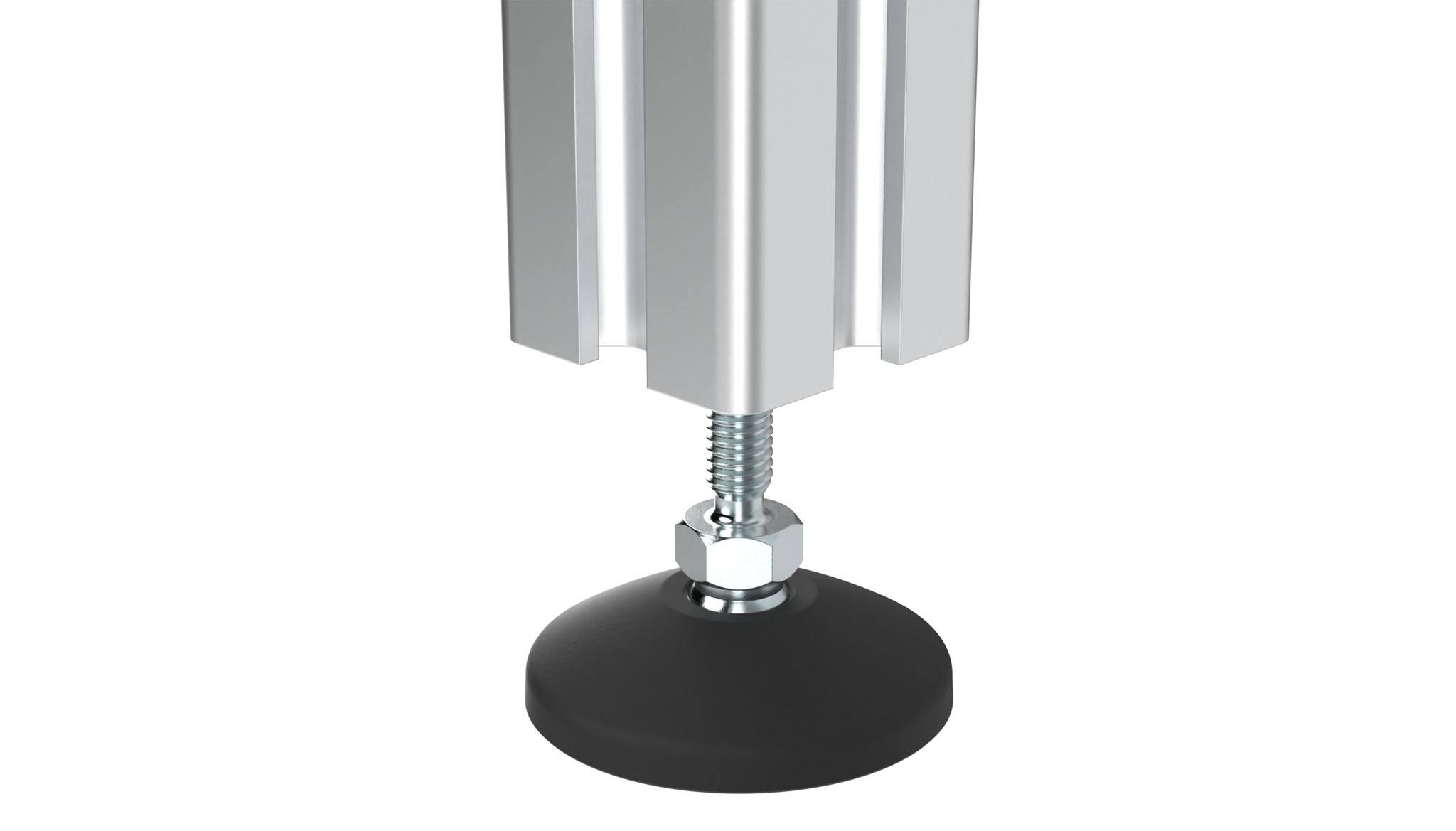 A swiveling leveling foot for strong positioning on uneven floors