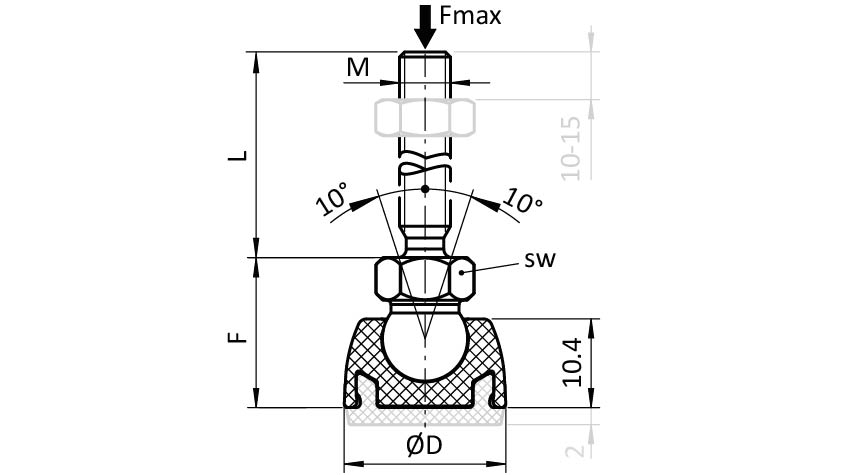 | Número de producto | Version | SW (mm) | F (mm) | Fmax (N) | D (mm) | Base | M x L (mm) |