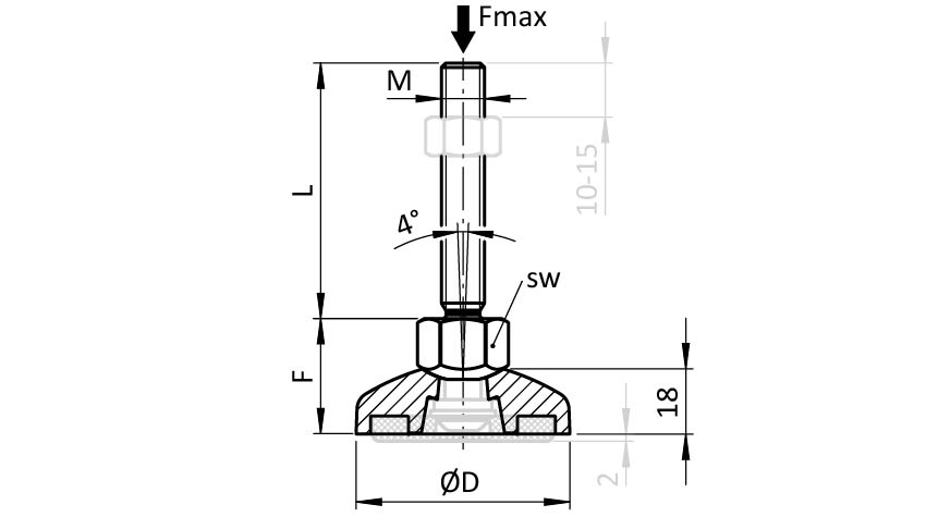 | Número de producto | Fmax (N) | Version | F (mm) | SW (mm) | M x L (mm) | Base | D (mm) | Feature |