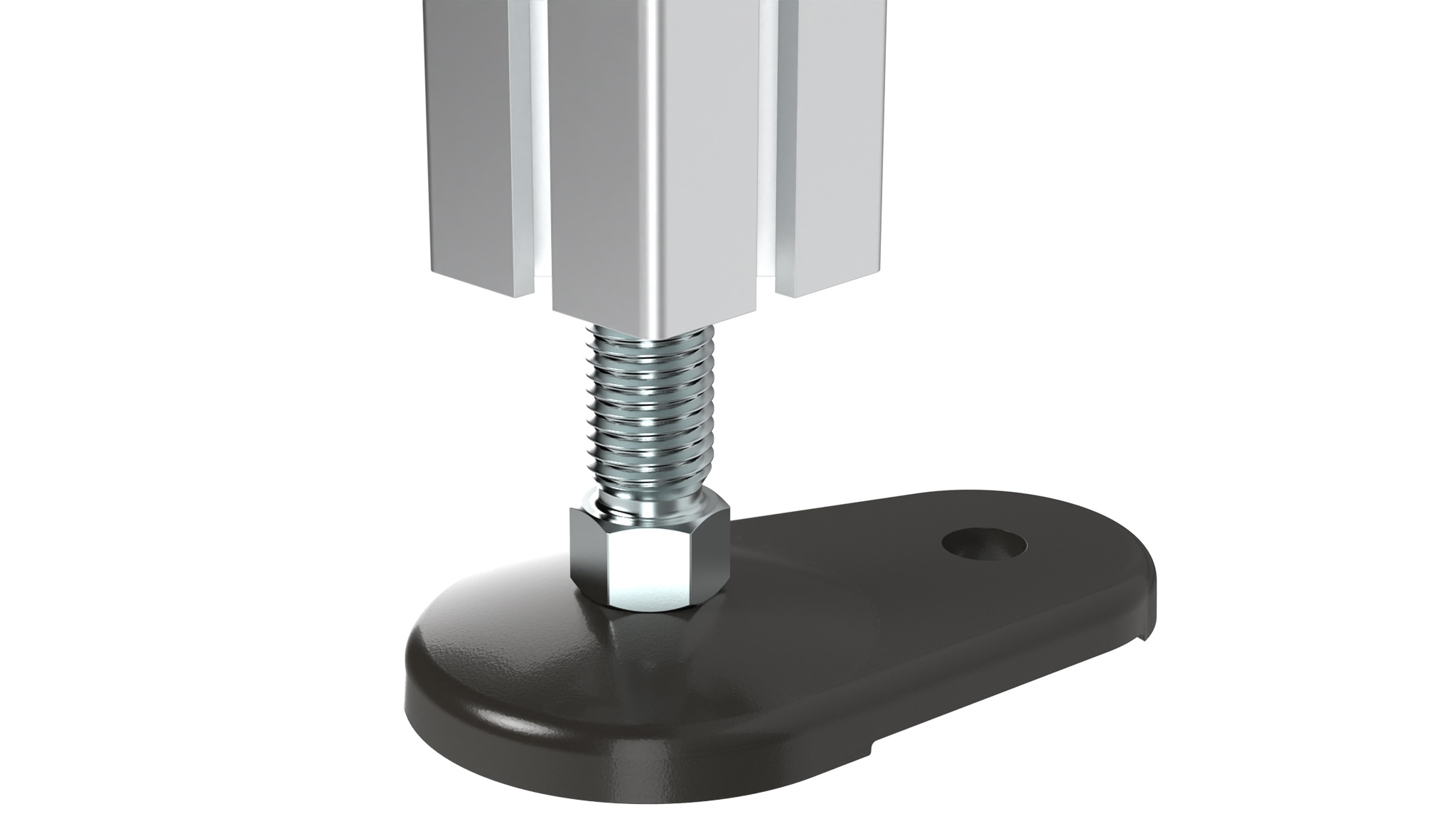 Extended leveling foot which can be fixed to the floor