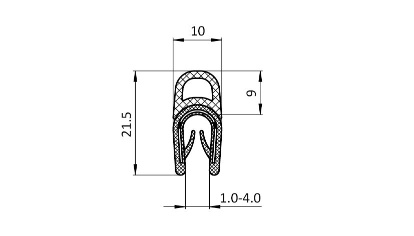 Perfil de junta para montaje a presión 10 x 21