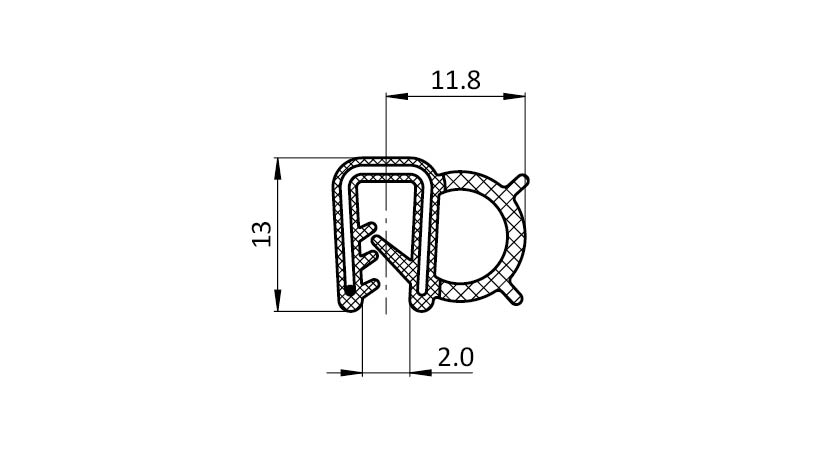 Perfil de junta para montaje a presión 11.8 x 13