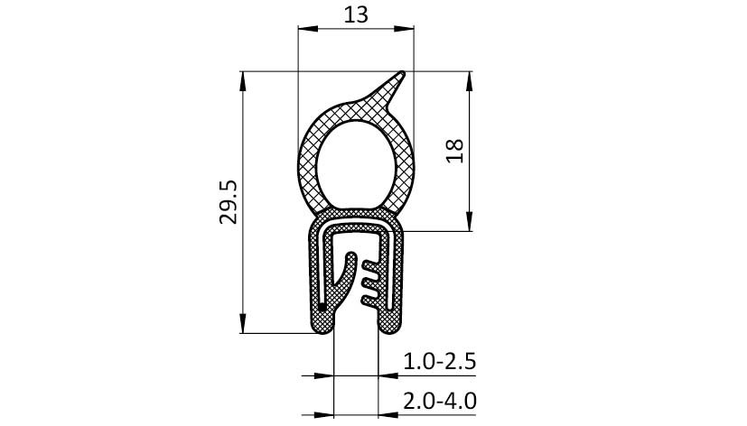 Perfil de junta para montaje a presión 13 x 29.5