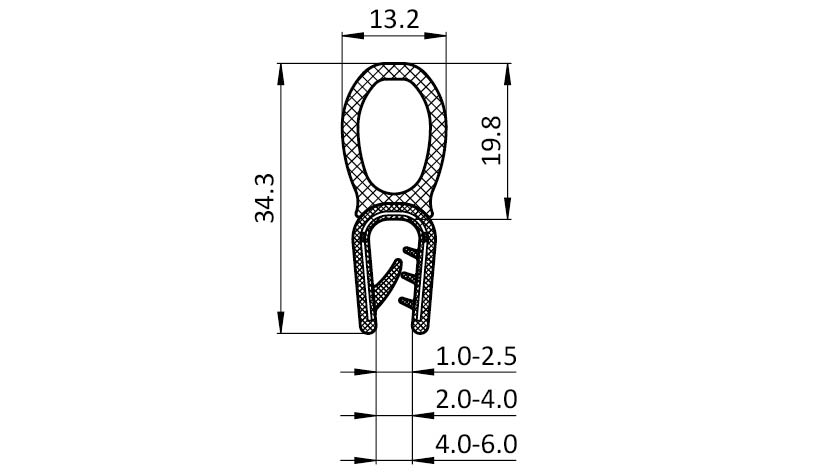 Perfil de junta para montaje a presión 13.2 x 35
