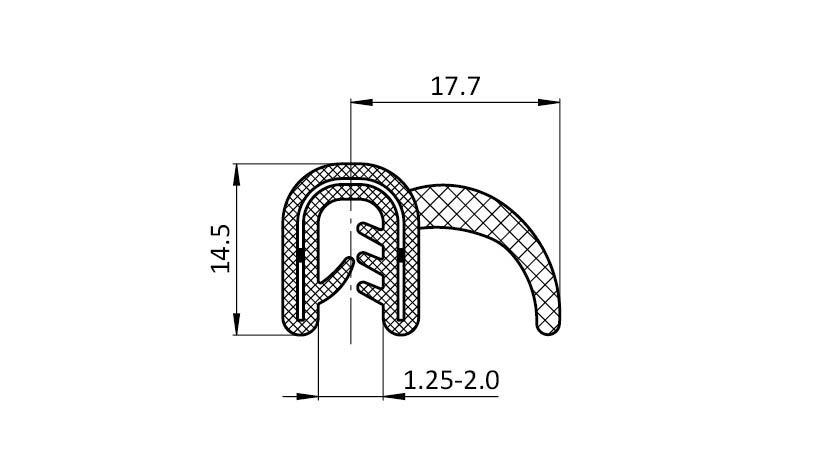 Información sobre el producto "Perfil de junta para montaje a presión 17.7 x 14.5"