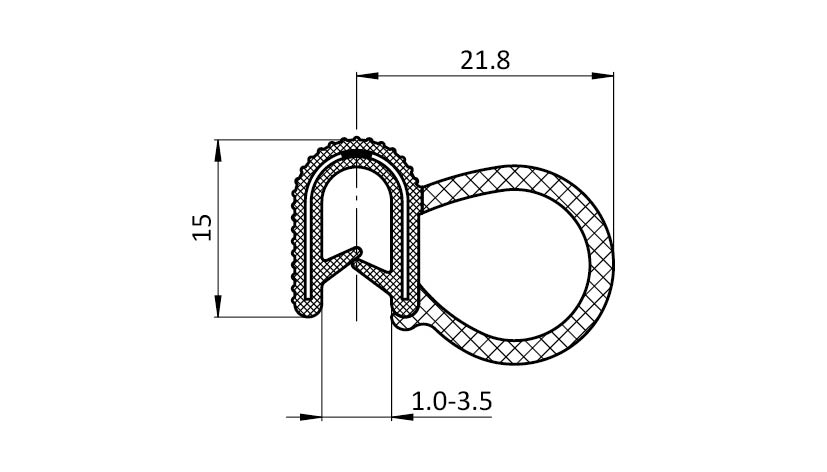Información sobre el producto "Perfil de junta para montaje a presión 21.8 x 15"