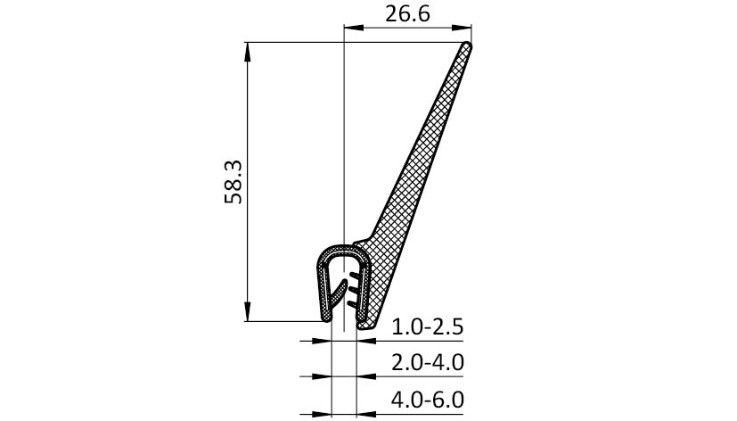 Información sobre el producto "Perfil de junta para montaje a presión 26.6 x 58.3"