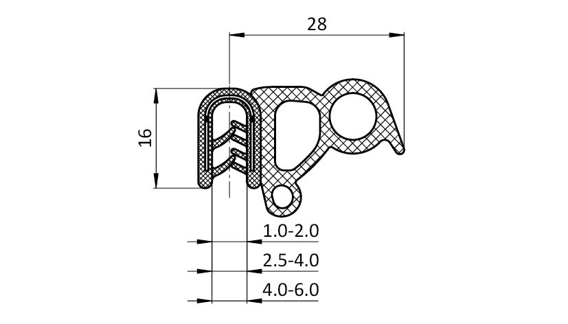 Sealing profile: Lubricant varnish, flocking, EMI film on request