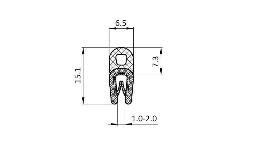Perfil de junta para montaje a presión 6.5 x 15.1