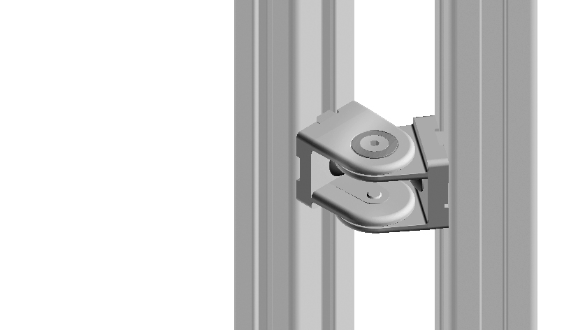 To make a pivoting connection between two profiles or panels; fixed locating pins for slot 8 optional; by tightening or loosening the screws you can seamlessly regulate the functionality of the joint or you can fix it in one position