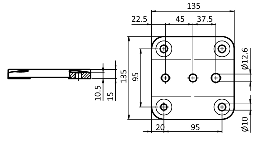 Información sobre el producto "Placa de apoyo 45 / 60 / 90 - 135"