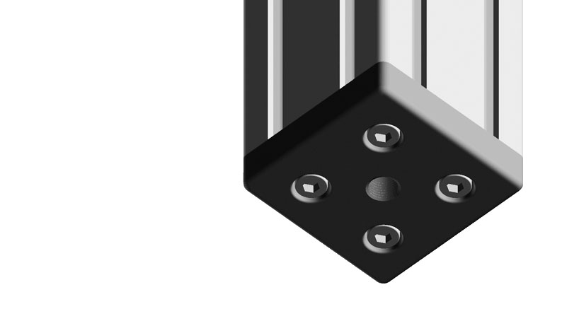 To mount leveling feet, rollers, hooks or similar components; connects to the profile sideways