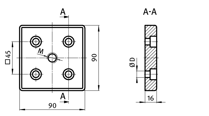 Placa de transporte y base ZN 90 x 90, sin recubrimiento