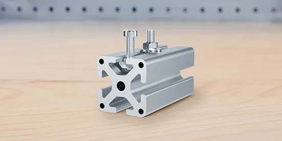 With the self-forming version, the profile connector can be mounted without prior processing to the profile. It is ideally suited to light to medium-sized connections as well as profile designs with panel material. Profiles can be connected with slot 8 or slot 10 – with the slot 10 profile connector, the necessary M12 or S12 reducing bushes for screwing into the core hole are included.