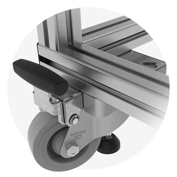 The FATH Swivel and Fixed Casters with Lifting Foot are ideally suited for modular dimensions 40 and 45 as well as right-angle profiles 40x80 and 45x90.
