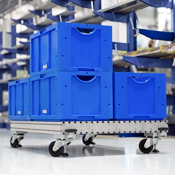 The perfect solution for everything that is frequently moved but still needs to stand securely – for example, on rollers in a parking position or at a temporary location and on the adjustable feet for work to be carried out.