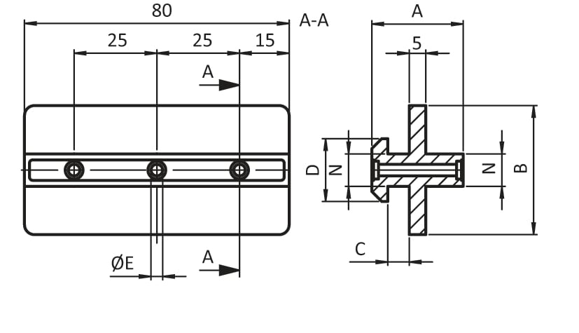 To guide slidingly profiles with slot 10; economic and wear-resistant solution, e.g. for sliding doors