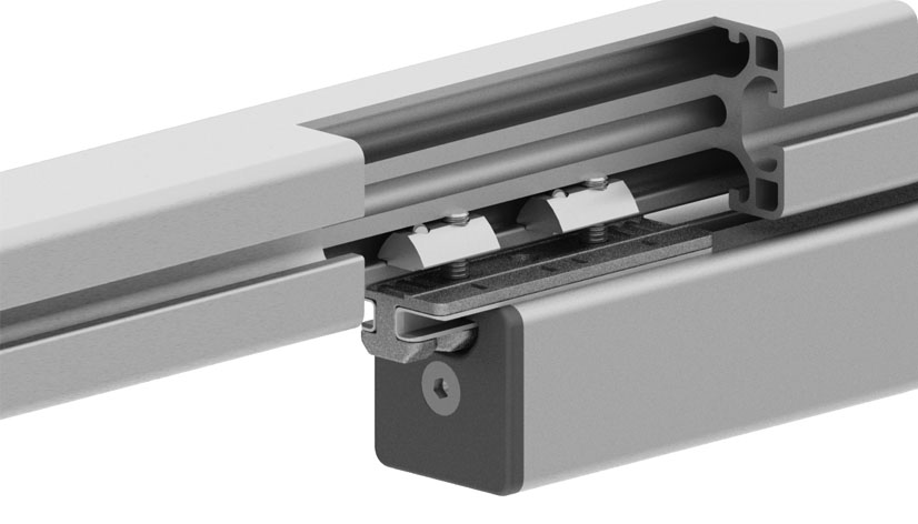 *Profile tracks with several profile sliders ZN 40 x 80 need to be executed as a combination of a loose bearing (L) and a fixed bearing (F). This way, shape tolerances can be compensated and easy movability is provided.; Compatible Profile Slider ZN 40 x 80 loose bearing see 093PS0840L