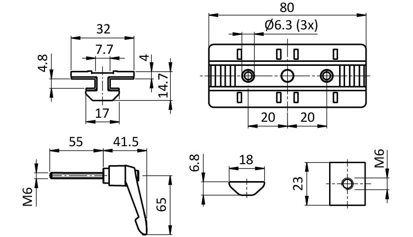 1 special T-slot nut - slot 8 - M6,