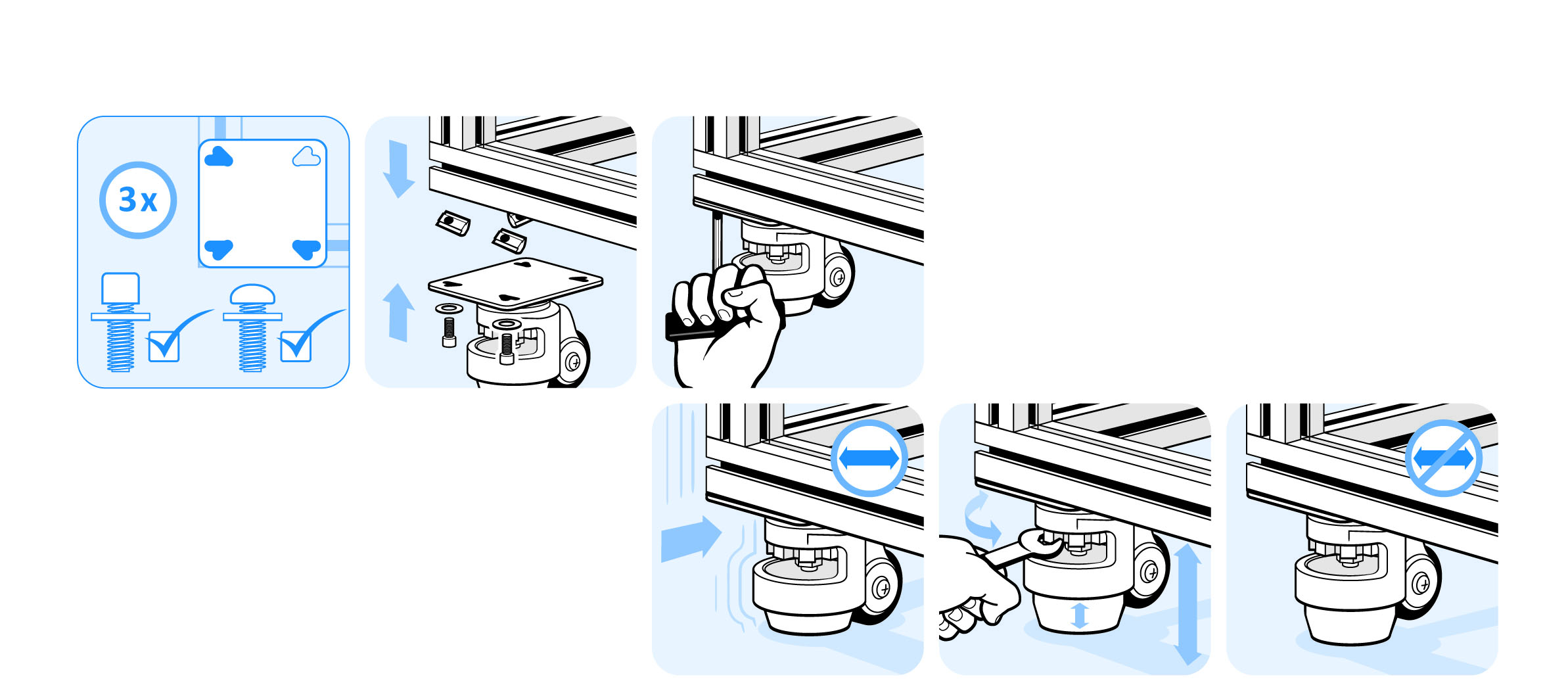 For fixation to aluminum profiles with modular dimension 40 and 45 mm without overhang