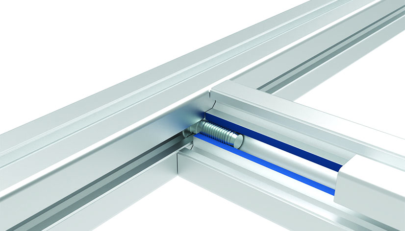 To connect two aluminum profiles; no thread cutter is necessary to fix the screw; because of the special form of the head of the screw and the self-forming thread, a conductive connection of two aluminum profiles is achieved