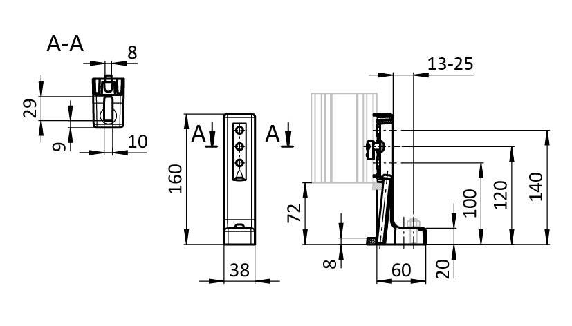 | Model: | Fundición inyectada de zinc, perfil 40 y superior |