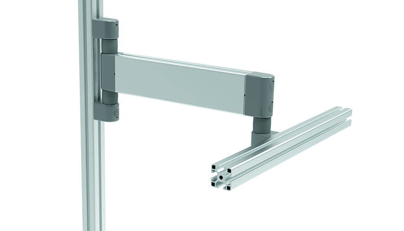 Stable pivot arm with a reach of approximately 370 mm and various connection options; pivotable 360°; pre-assembled