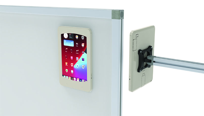 To fix flat screens to aluminum profile structures or magnetic surfaces, VESA MIS-D 75/100 compatible