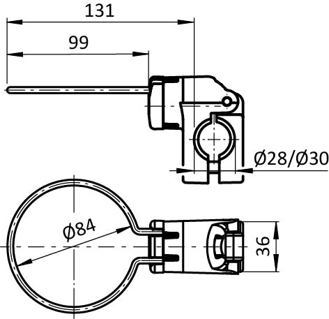 Ready to use tool holder ring with 80 mm diameter, 360° turnable, for tubes or tubular frame profiles;