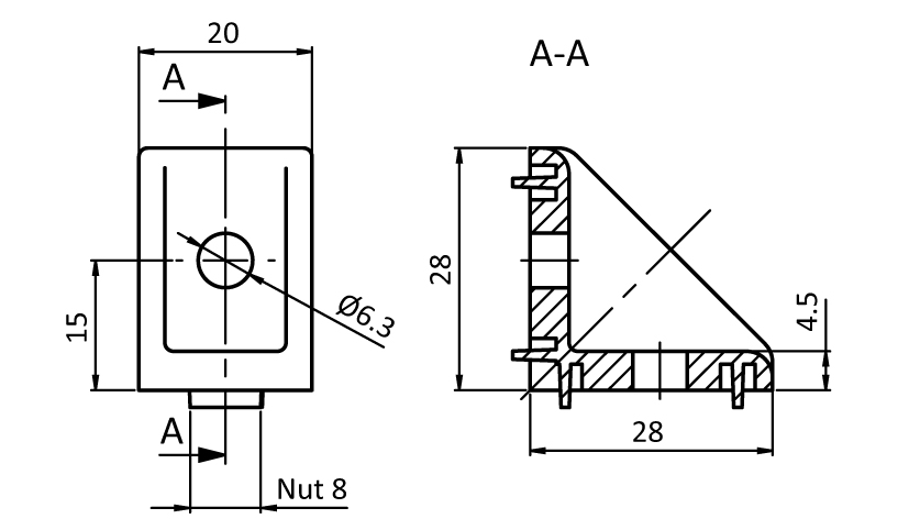 Zinc Connection Angle 20 x 28