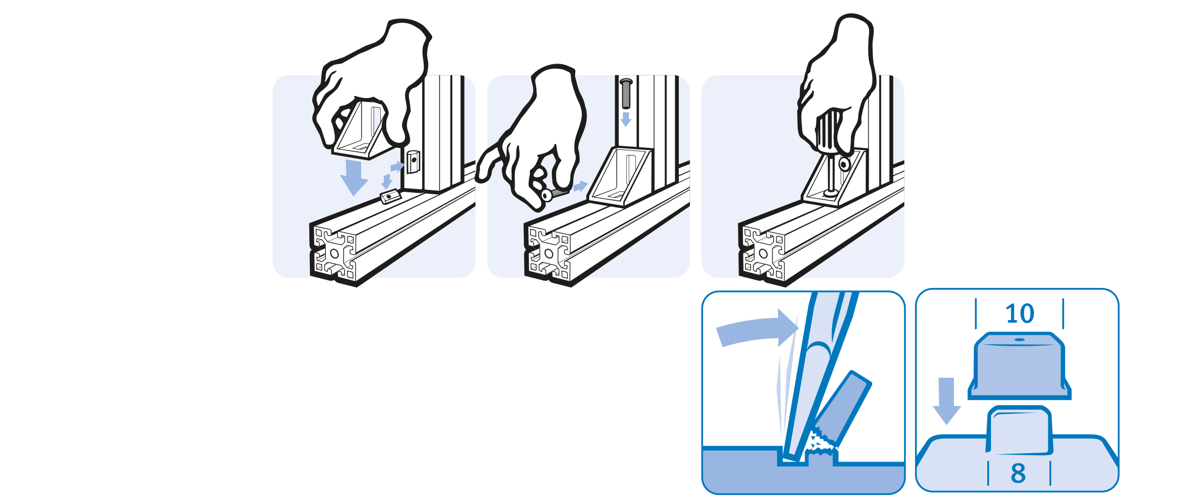 To connect two profiles and panels at right angles