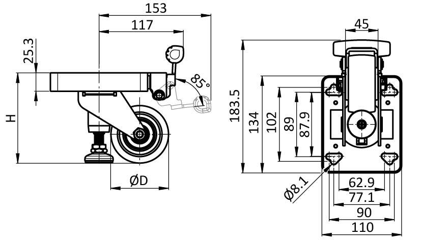 Información sobre el producto "Rueda fija con pata elevadora"