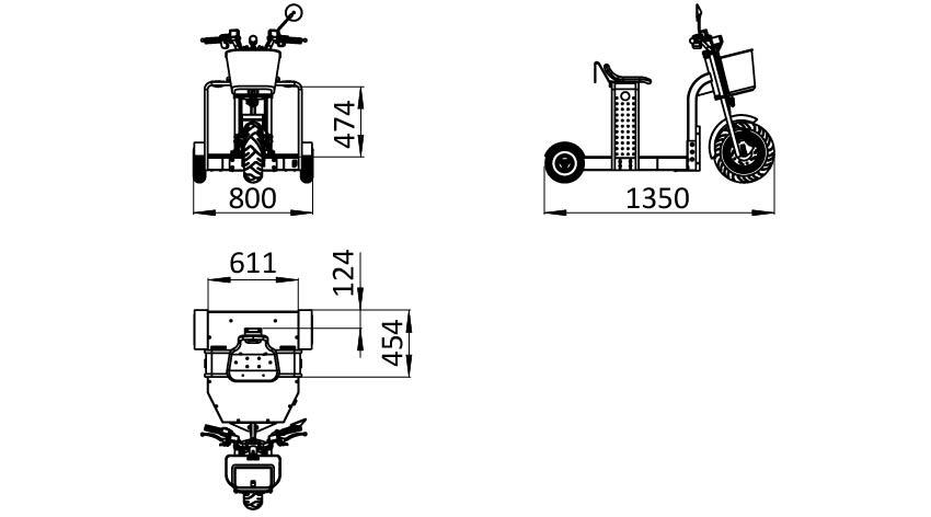 Electric three-wheel scooter for fast indoor and outdoor mobility, as well as for transporting goods, boxes or tools;
