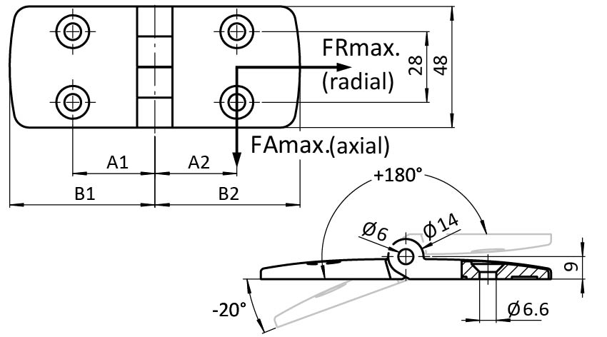 | Fixation: | Depuis l'avant, avec vis à tête fraisée M6 |