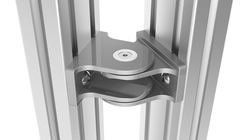 To make a pivoting connection between two profiles or panels; with separate locating pinsfor slot 6 and 8; by tightening or loosening the screws you can seamlessly regulate the functionality of the joint or you can fix it in one position