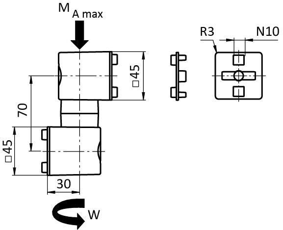 Le joint de friction peut être fixé latéralement, transversalement, ou sur la face du profilé; si fixé sur la face avant, le trou central du profilé respectif doit être fileté M8 (min. 15 mm de profondeur)