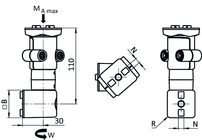 Friction joint side can be attached lateral, transverse, or on the face of the profile; if attached on the front face, the core hole of the respective profile must be M8 threaded (min. 15 mm deep)