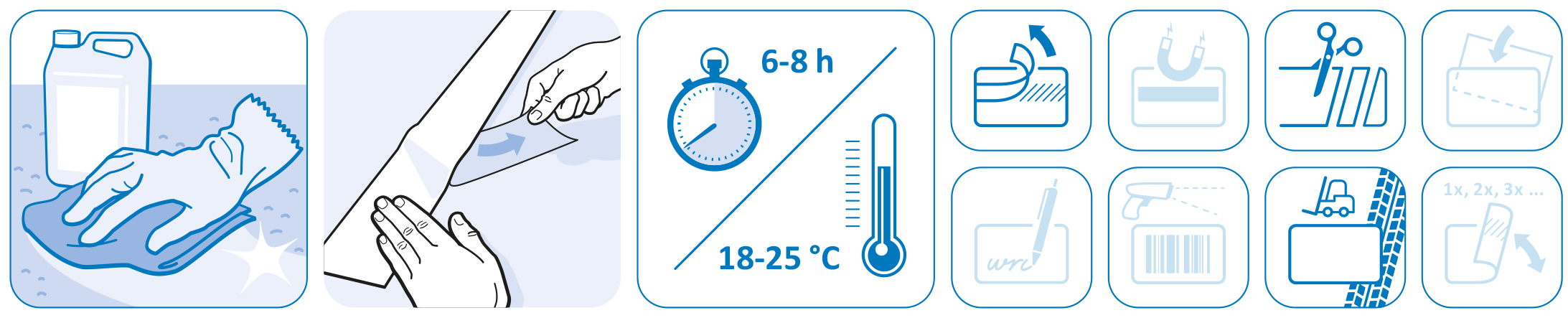 Pour un marquage facile et fiable des limites de chemin, des escaliers, des zones de stationnement / stockage / travail, etc., autocollant ;