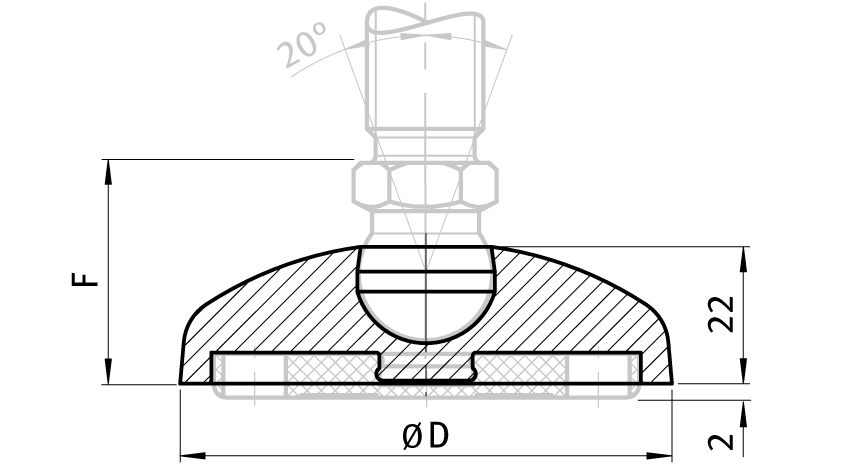 Informations sur le produit "Base PA pour pieds à rotule, rotule 22"