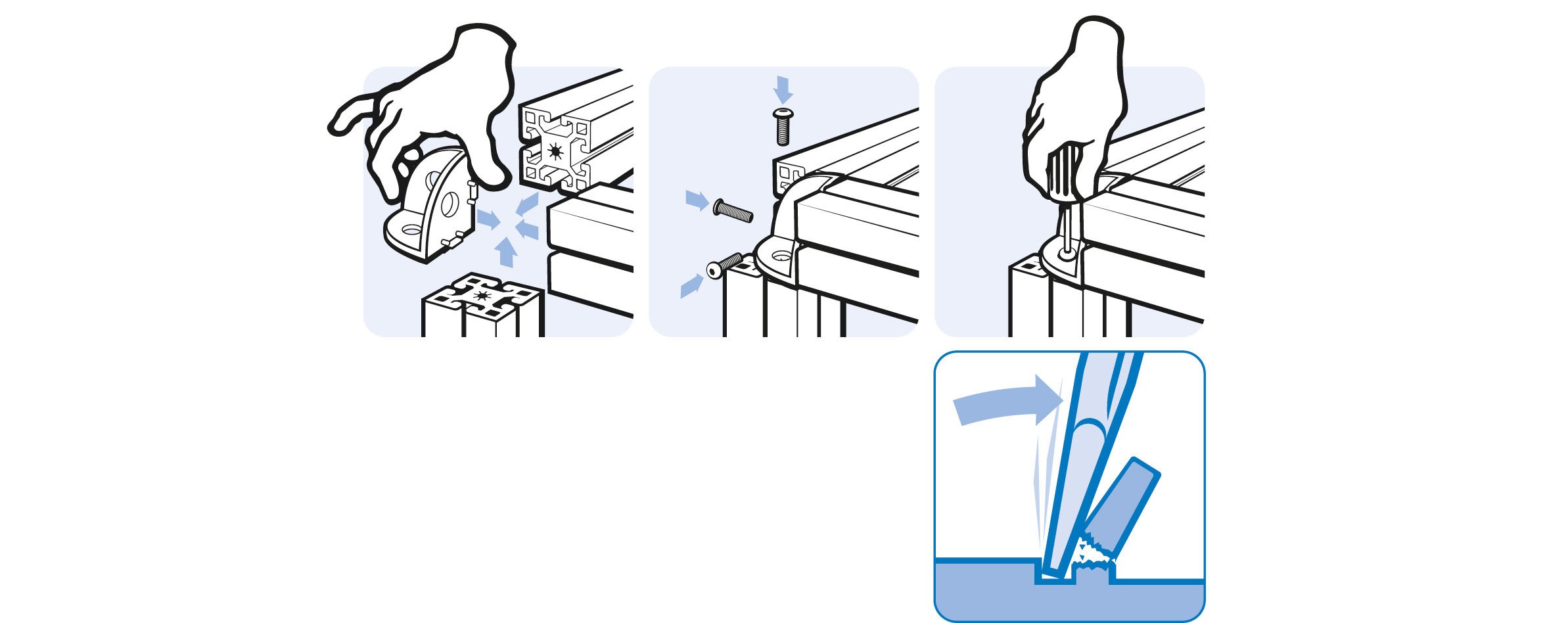 Pour connecter jusqu'à 3 profilés aluminium à angle droit
