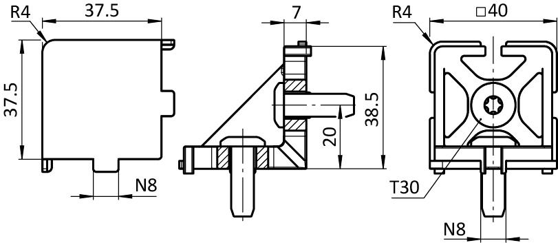 1 corner connector 40, 2D with cable passage