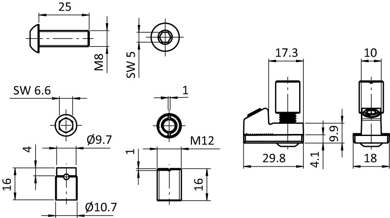 1 threaded bush M12