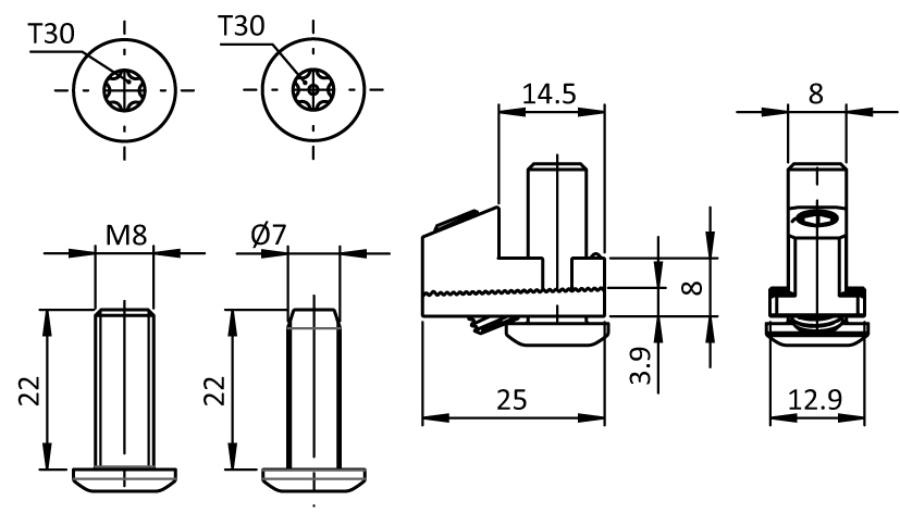 Connecteur rapide 90° I, Rainure 8 (Kit)
