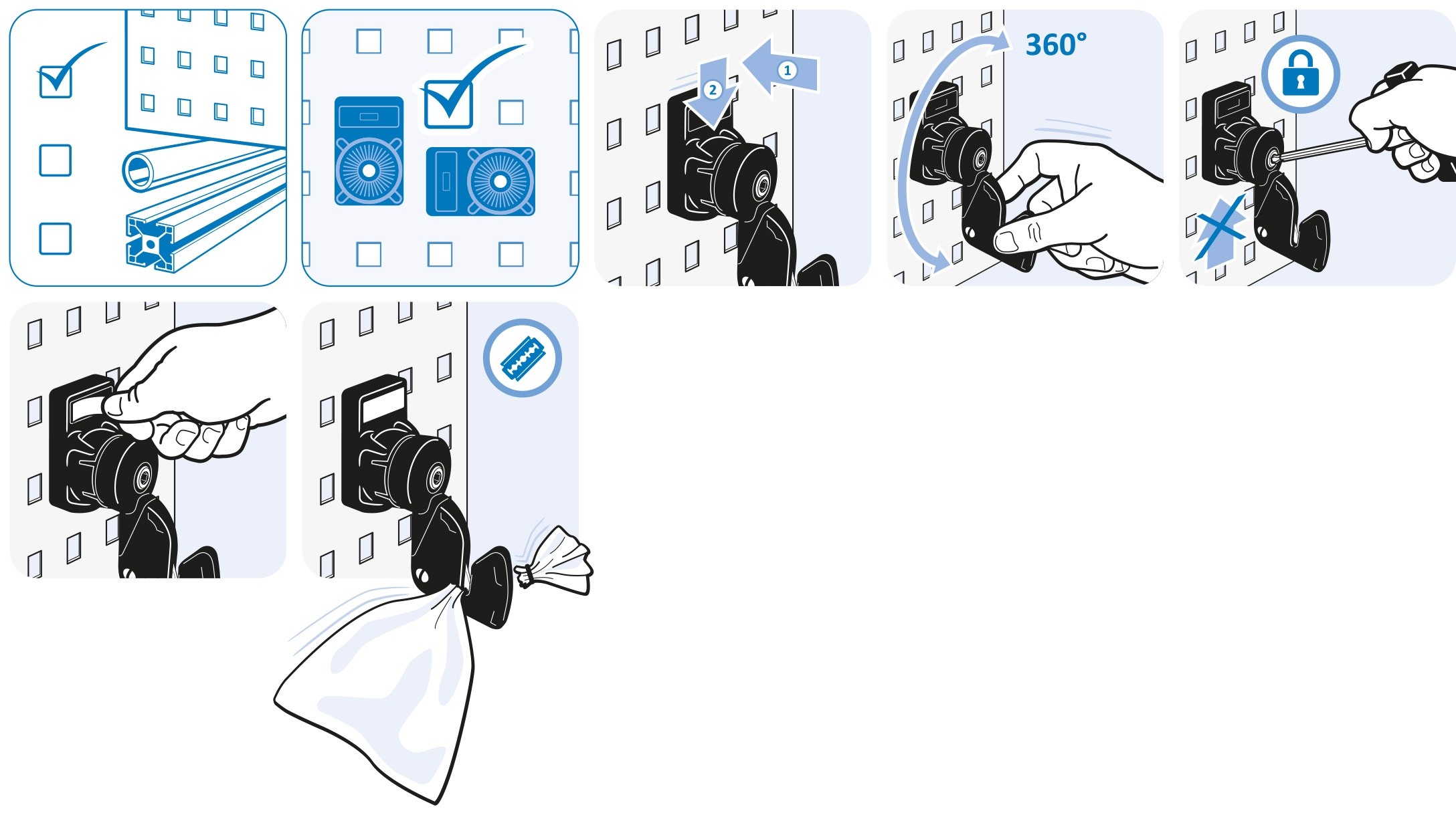 Coupe-sac prêt à l’emploi, lame interchangeable, pivotant à 360°, pour les tôle perforé jusqu’à 1,4 mm d’épaisseur ;