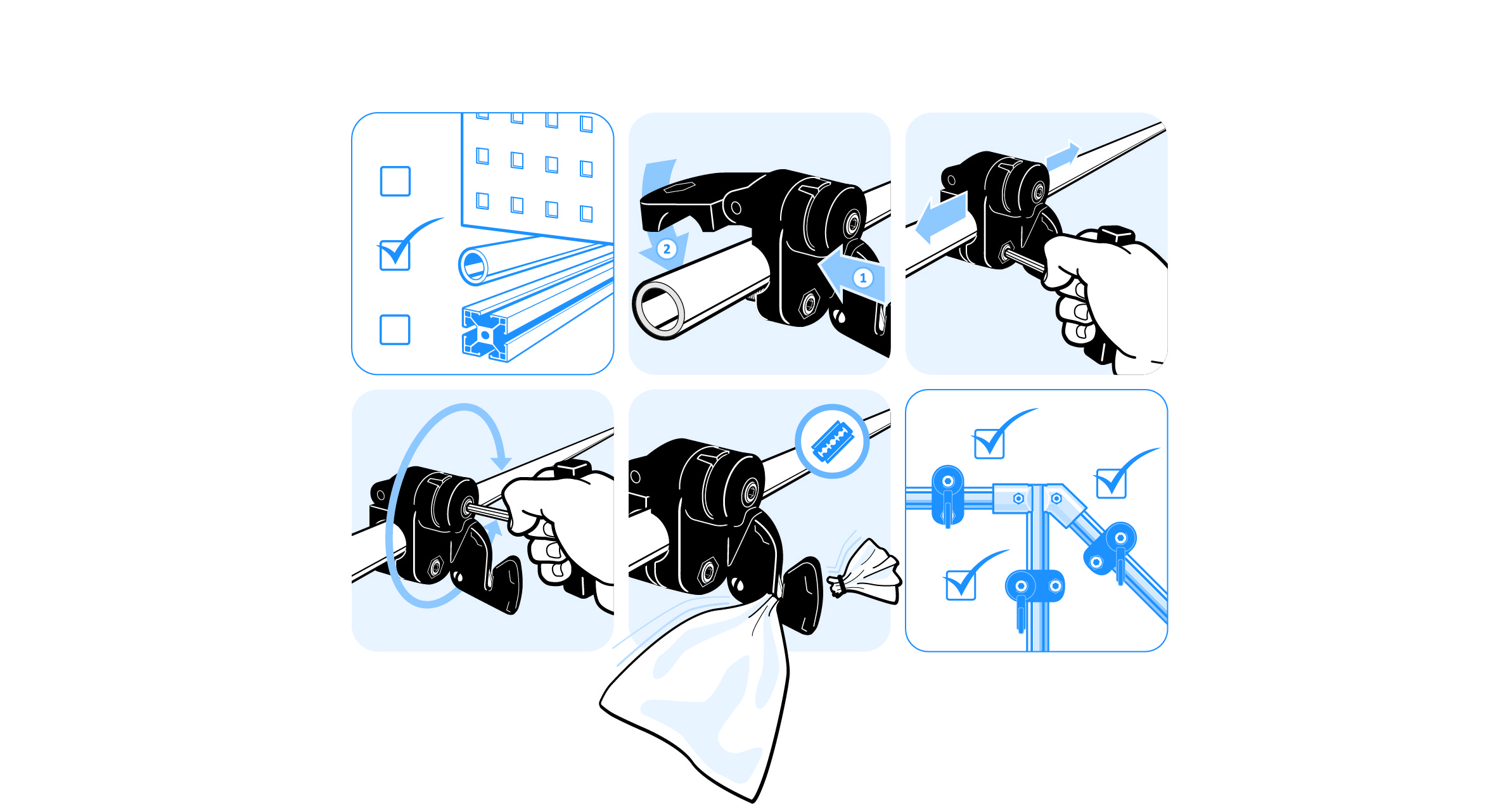 Ready to use bag cutter, changeable blade, 360° turnable, for tubes or tubular frame profiles and perforated metal