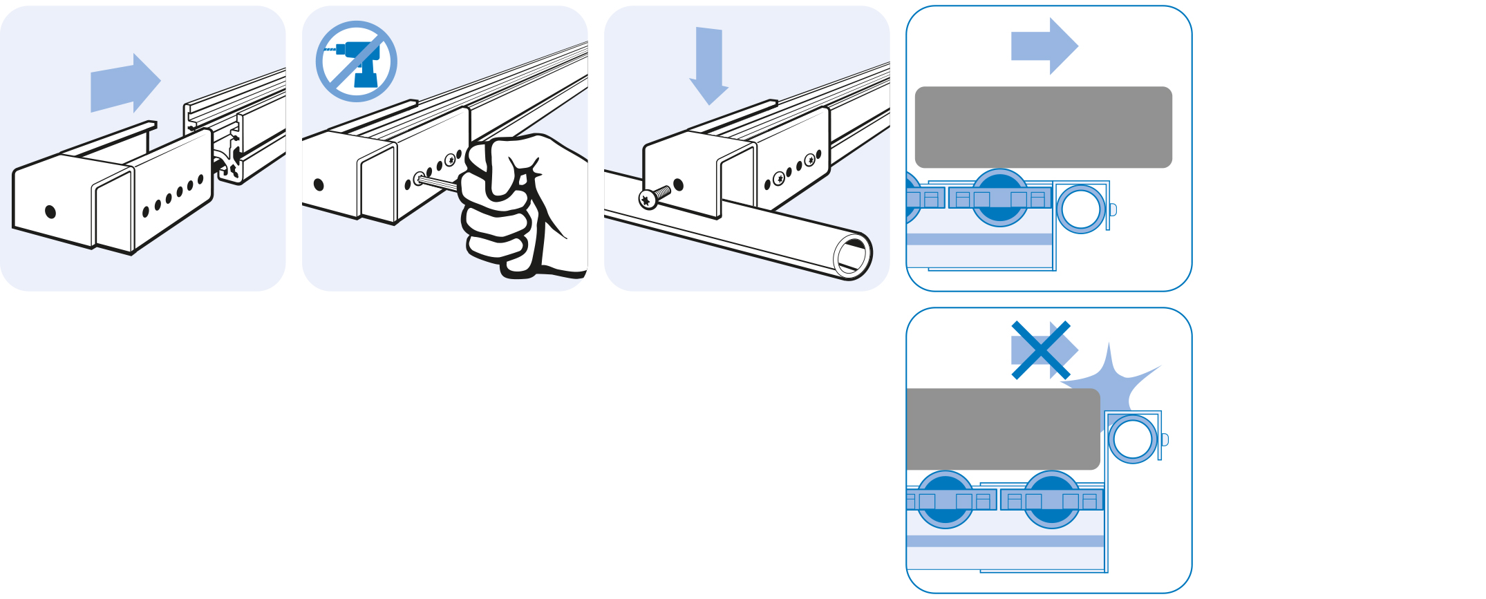 Pour le montage de rails à galets AL sur des profilés structurels tubulaires Ø 28 mm, empêchant les inserts de glisser
