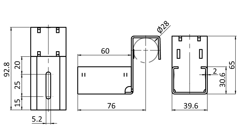 Pour le montage des rails à galets XST et des rails de guidage XST centraux sur des profilés structurels tubulaires avec un diamètre externe de 28 mm, empêchant les inserts de glisser