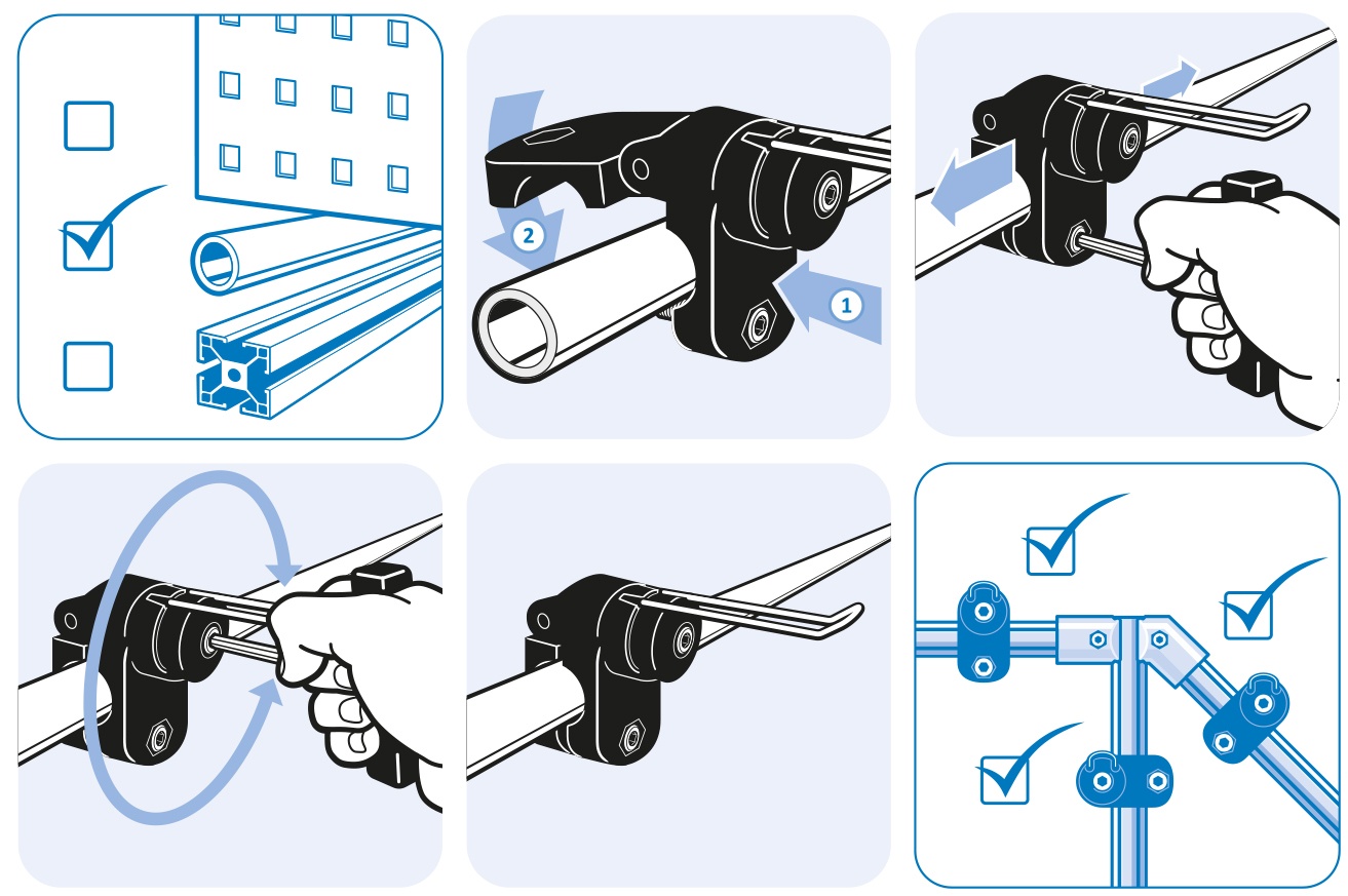 Ready to use tool hook, 360° turnable, for tubes or tubular frame profiles